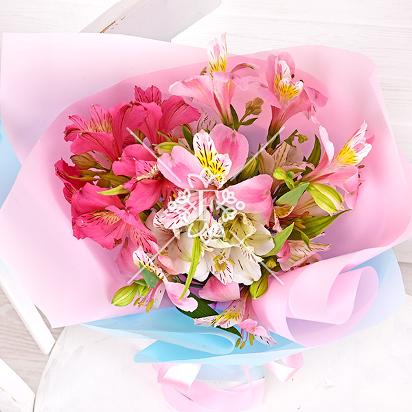 Разноцветная альстромерия покоряет своей воздушной легкостью! Букет выполнен в розово-белой гамме, выглядит восхитительно и привлекает к себе восторженное внимание.